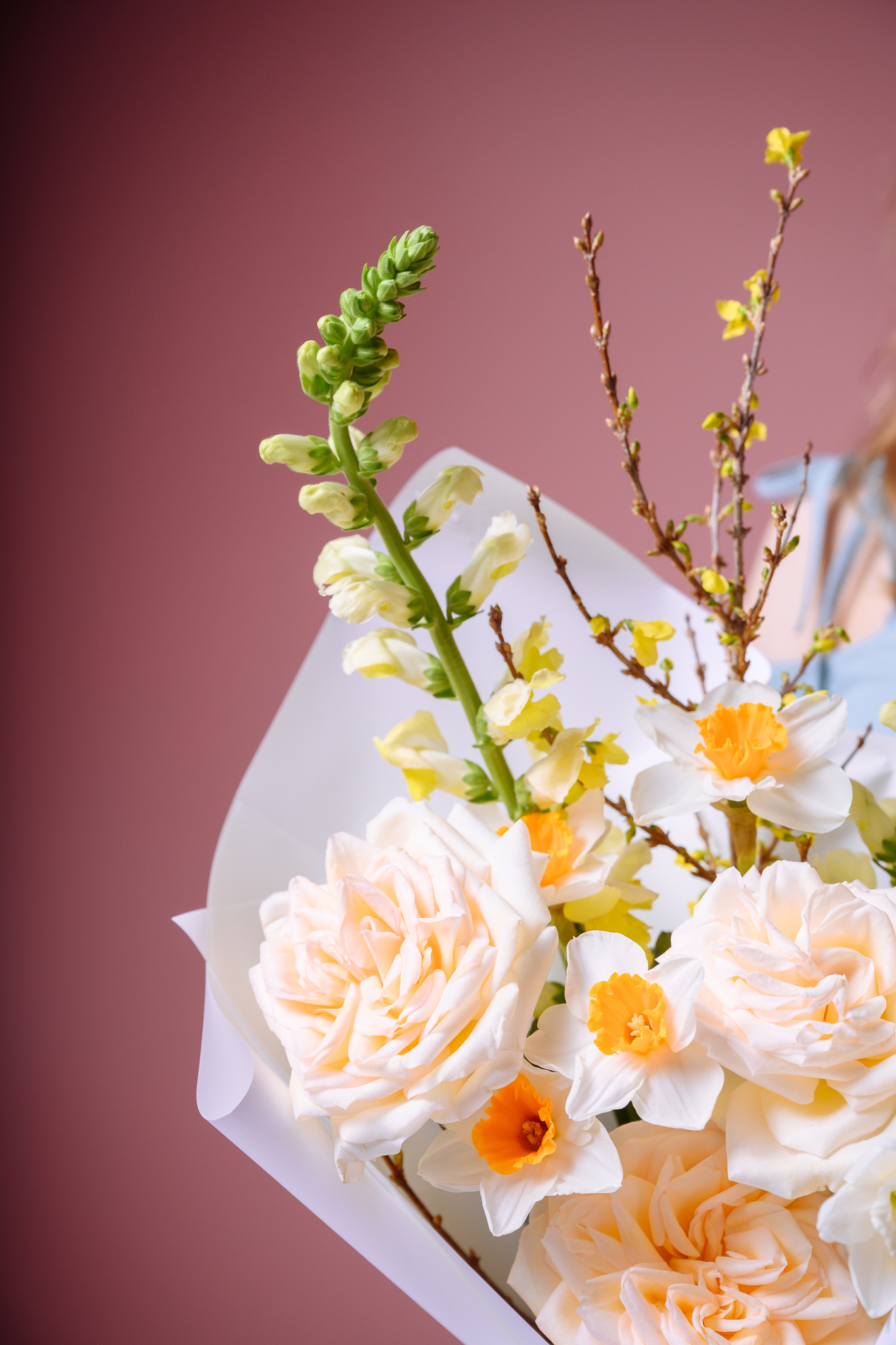Данный букет является авторским, возможны замены сезонных цветов, с согласованием перед доставкой, а также сохранением количества цветов, объема букета и цветовой гаммы в букете.