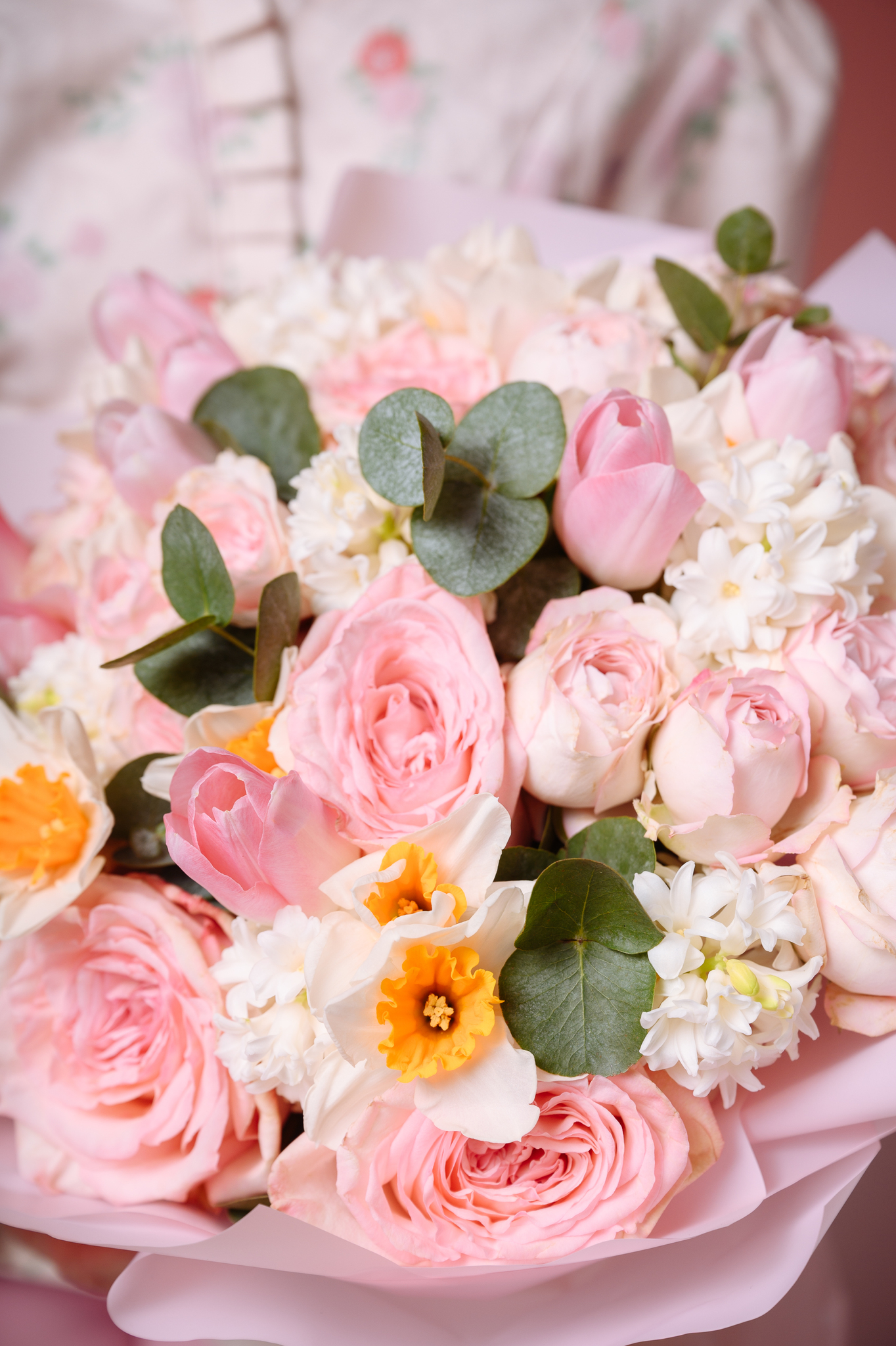 Данный букет является авторским, возможны замены сезонных цветов, с согласованием перед доставкой, а также сохранением количества цветов, объема букета и цветовой гаммы в букете.